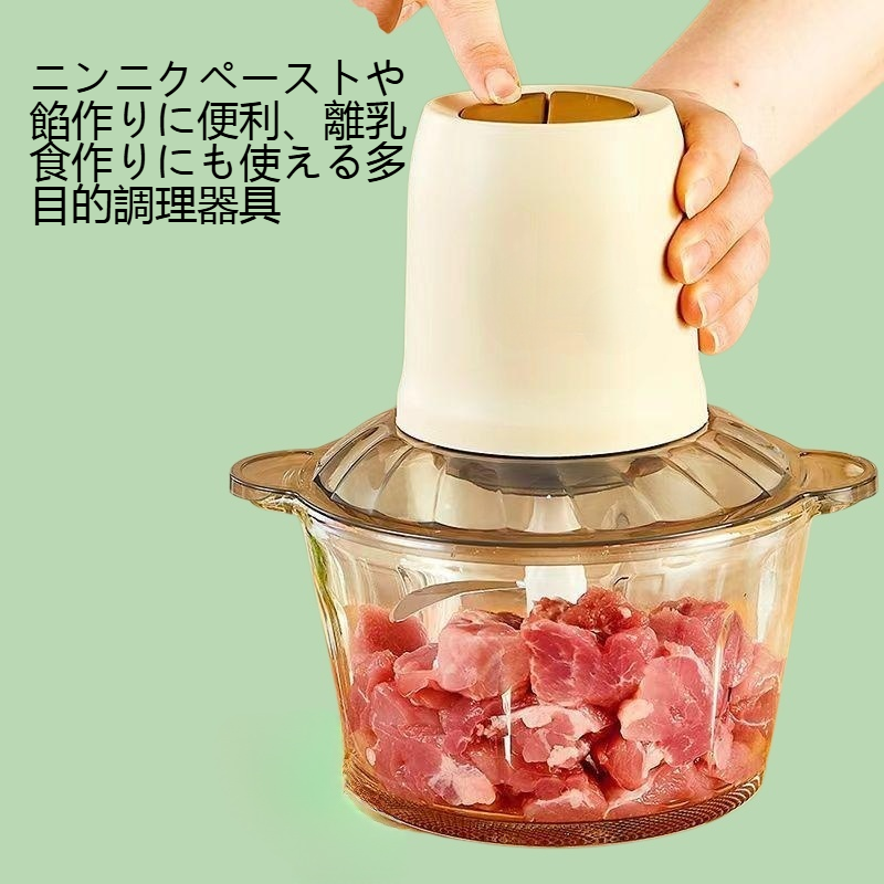 多機能全自動電動ひき肉機は、ワンタッチ操作で肉や野菜を素早く均一にカット。部品は分解洗浄可能、省スペース設計で家庭用に最適。