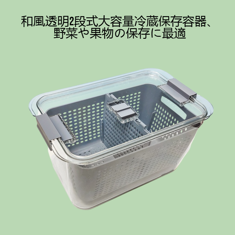 透明設計で中身が一目で分かる二層構造。大容量で食品の保存や整理に最適。密閉性が高く鮮度を保ちやすいアスファルトタッパー。