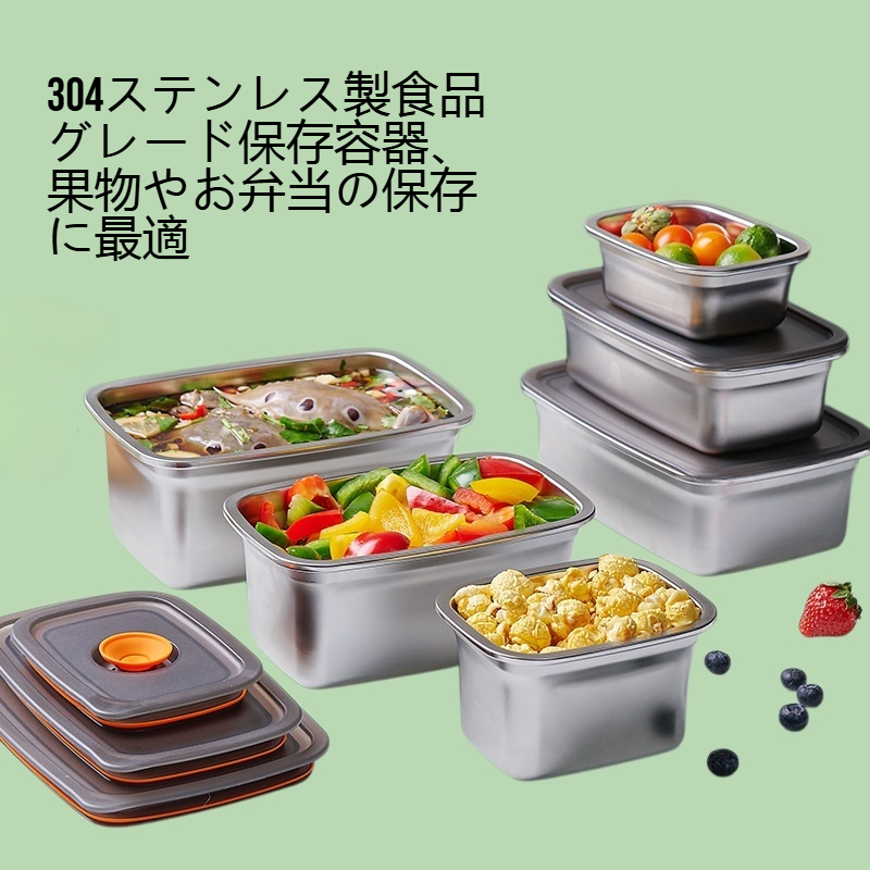 耐久性と錆びに強い304ステンレス製。食品の保存や持ち運びに最適。密閉性が高く、臭い漏れ防止。食洗機対応でお手入れ簡単。